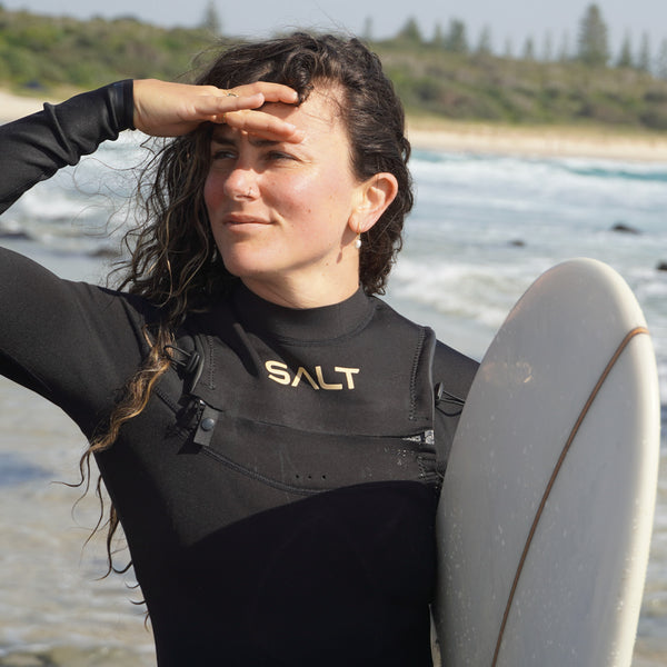 Our SALT Abyss Women’s Bikini Spring Suit – 1.5mm is based on our ever-popular original women’s bikini spring suit. You will slip right into this lightweight super-stretch spring, which will instantly become your go-to. Designed with recycled nylon outer lining and our soft SALT tan lining, so that your arms will glide straight through. The overhead design features a MagZip® chest zip that magnetically connects, avoiding the hassle of trying to line up your zipper. Pull toggles on either side of the shoulder allow you to adjust the fit, while the rolled glideskin with silicone panels reduces flushing through the side. Featuring our iconic SALT drop integrated loading pad with reinforced SALT print tape means you can wear this stylish suit for a range of ocean activities.